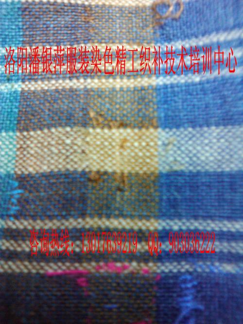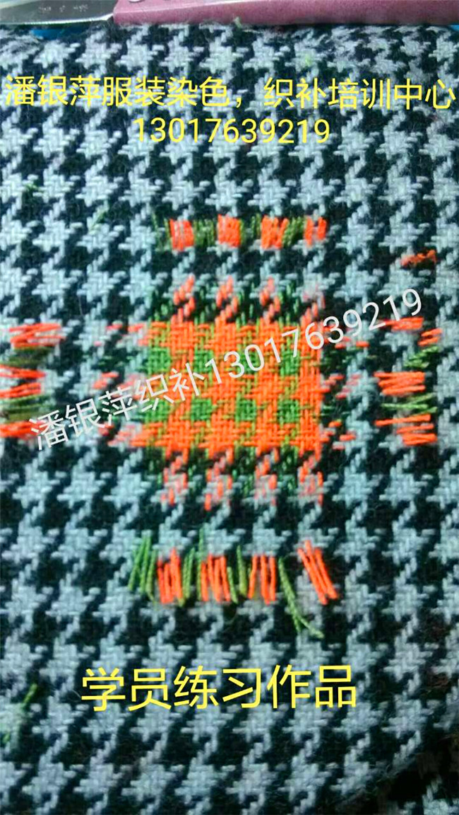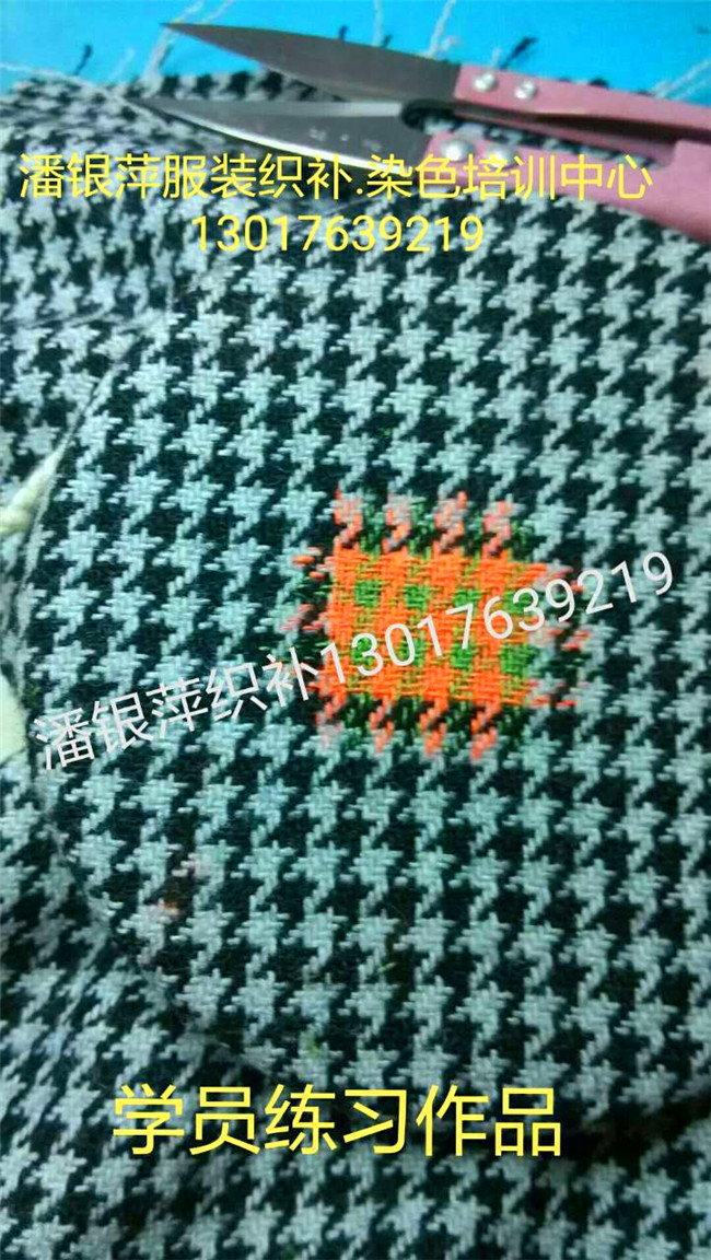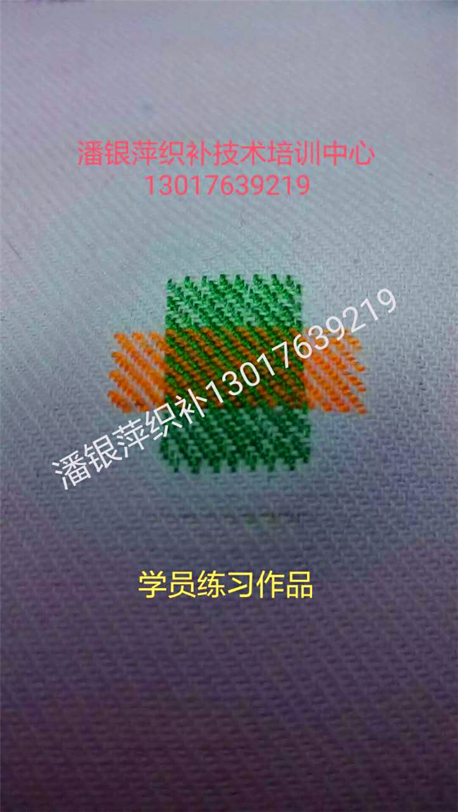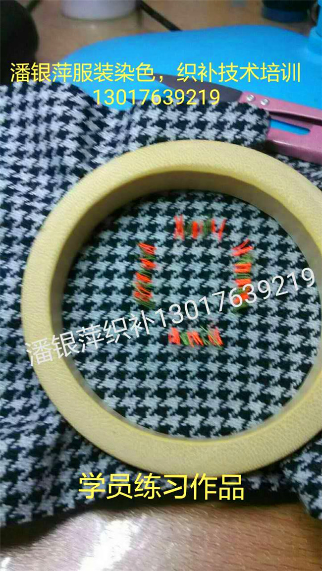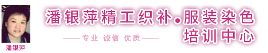 洛陽市潘銀萍服裝織補店創辦于1993年,是上海百年老店老日昇織補技術。是享譽海內外的上海老日昇織補大師、十佳技能手、織補師潘維君的傳人弟子,師傅潘緯君被錄入上海地方志。   潘銀萍傳承上海百年老店老日昇織補技術,創辦的洛陽市潘銀萍服裝織補技術培訓中心,專業培訓各種:高、中、低檔服裝破損洞、蟲蛀洞的業精工織補技術。(1.紡織類:西服、平紋凡爾丁、板絲呢、嗶嘰、華達呢、馬褲呢、海軍呢、人字呢、格子呢、牛仔服、羽絨服、毛料、毛呢、羊絨大衣、燈芯絨、滿天星。2.針織類:羊絨衫、羊毛衫、T恤衫、毛衣。3.其他:繡補。無痕織補、仿補、創意補、無縫貼花、袖貼、皮衣、皮……